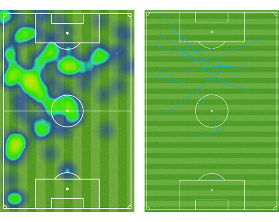 His heatmap from Saturday’s victory (Fig 1) showed how much he loves occupying that inside-left position.